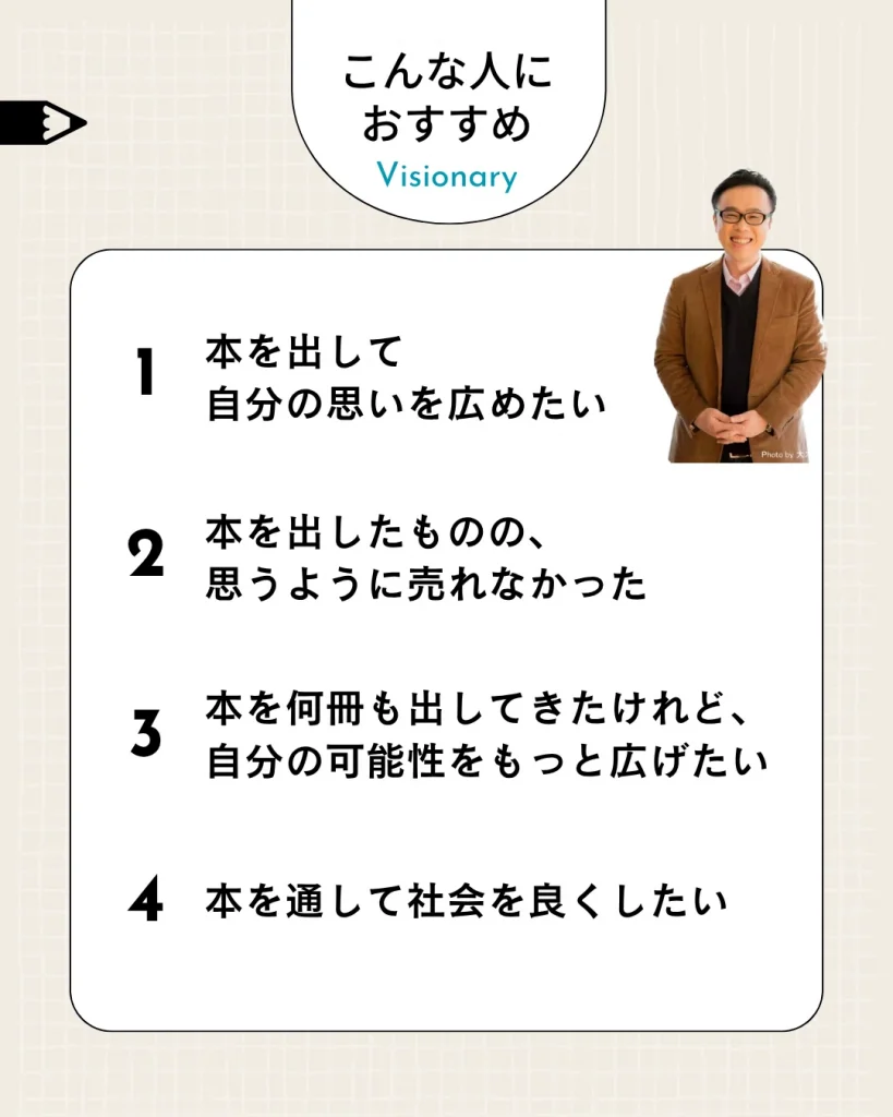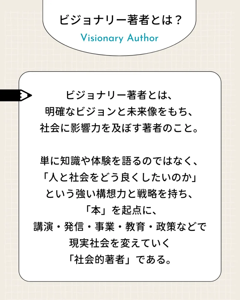 私たちはそんな志を持った著者のことを「ビジョナリー著者」と呼んでいます。定義は以下の通りです。