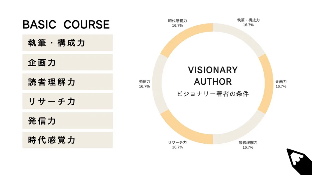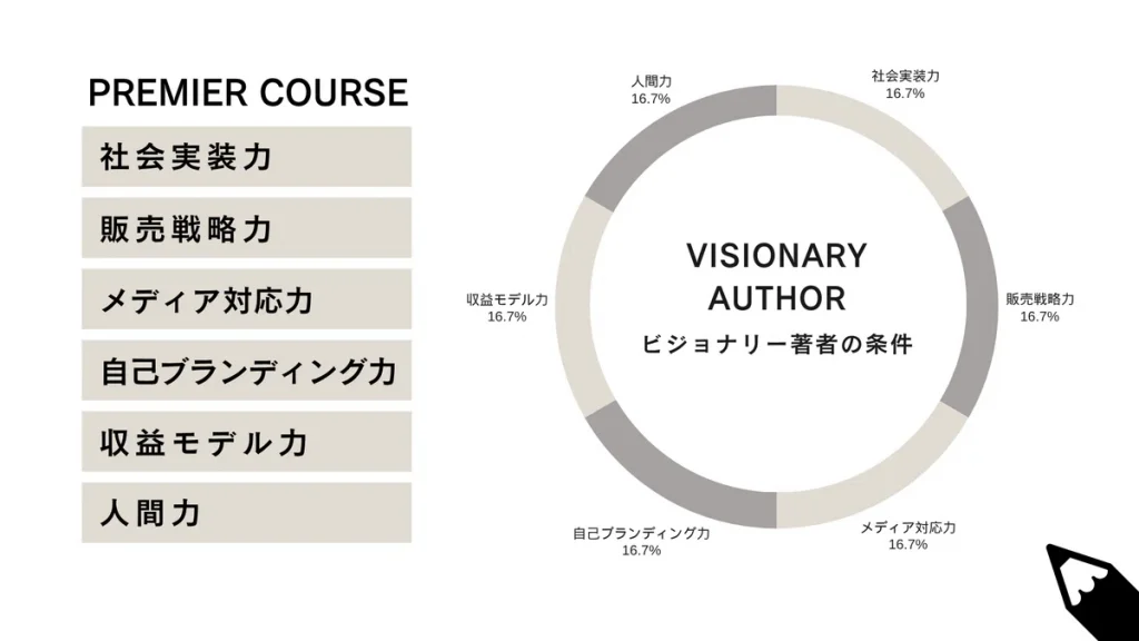 この講座では、ただの“著者”ではなく「ビジョナリー著者」になるための本質的なスキルを体系化しています。