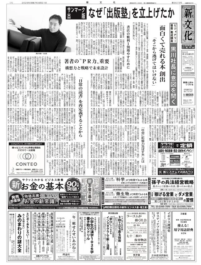 ◉出版業界紙『新文化』一面に黒川精一のインタビューが掲載